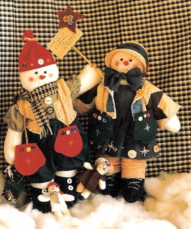 & Frostene As the temperature drops below freezing the days become shorter, snowflakes form, snowballs fly, and snowmen (and ladies) come to life for a brief instant. Pattern includes 24" boy and girl and 4" baby |