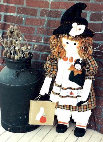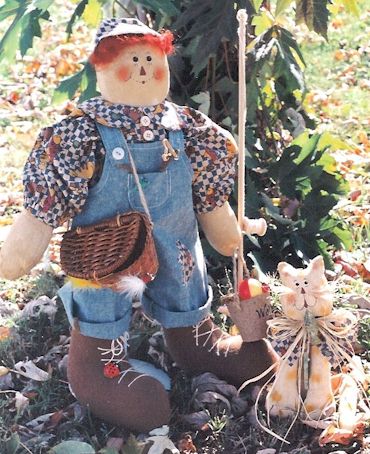 Fishing Raggedy Andy and Raggedy Cat are off to the creek on a beautiful fall day. Looks like Raggedy Cat has already caught his limit. Pattern includes 24" boy and 10" cat. |