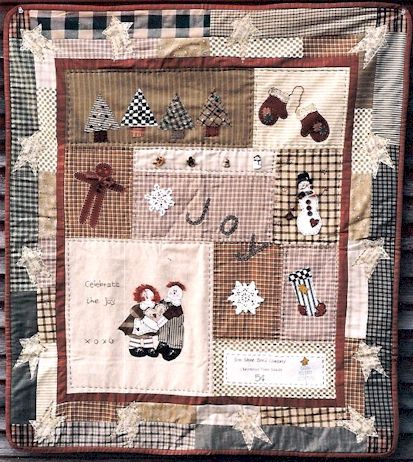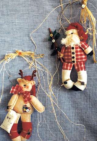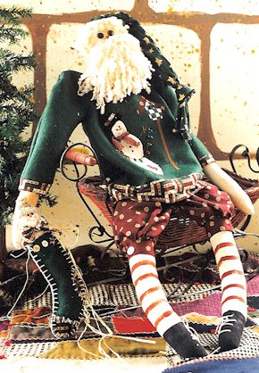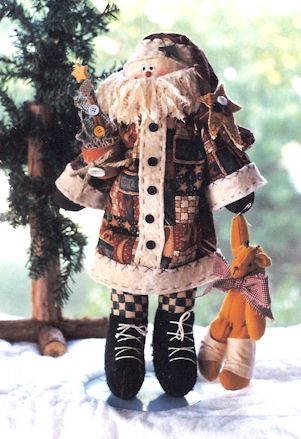 Claus Santa and his cutest reindeer are preparing for the season of joy and peace on earth. Pattern includes 24" Santa dressed in an old quilt with buttons and hearts and 12" reindeer with stockings |