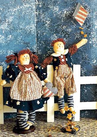 & Betsy Hooray for the red, white and blue. Celebrate the American spirit. Pattern includes 15" boy, girl and firecracker pull toy. |