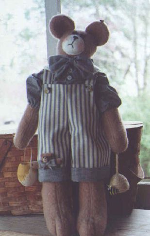P. La Beara Mortimer and his baby are ready for their favorite hobby – gathering honey. Pattern includes 24" and 4" bear with beehive. Made from cotton batting or plush felt. |