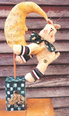 Packets Grass seed...udderly delicious; Paw Paw seeds ...purr-fectly divine. Pattern includes 6 1/2" rabbit, cow pig, boy, girl, bear and cat in easy to paint Christmas stockings. |
