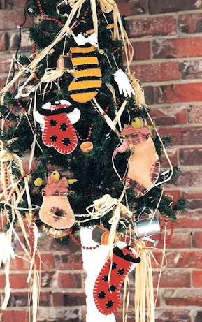 a Bug’s Christmas In my garden you will find a funny little evergreen with stockings and mittens to keep the little critters as snug as a bug in a rug. Pattern includes 6" mitten, and 9" stocking with a ladybug, a bumblebee and a grasshopper. Hang them on the tree with twisted wire. Very easy and quite unusual. |