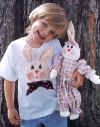 | Hop into wearable art with this cute bunny and cuddle an adorable bunny to cuddle. Pattern includes appliqued bunny head with very easy to paint face and 21" bunny with painted face. | Learnin’ first, but I’d rather be fishin’! Let’s play hooky? Pattern includes 15" tall and skinny bunny, kitten, and pig boy and girl. |