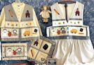 | Just knowing your Teddy Bear is home waiting at the day’s end – makes each day happier. Pattern includes vest, jumper (S-XL), 15" wall hanging, 8" x 11" mini quilt and 11" bear. | Teacher’s have a heart for children, for knowledge and for the future. Pattern includes vest, jumper (S-XL), 8" x 11" mini quilts, 15" wall hanging and 11" schoolgirl doll. |