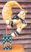 Ho Ho Ho! Santa says, as Rudolph trips over the moon. Pattern includes crescent moon with stitchery, 12" reindeer in socks and wood birdhouse base. |