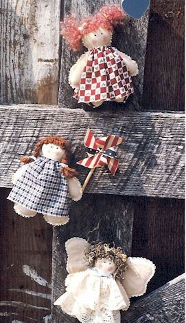 | 113 | Raggedy Annie Star spangled Annie can be such an angel. Pattern includes 6" Americana doll or angel. Add wire and stars or wings to this quick and easy doll |