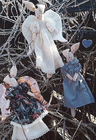 | 115 | Angel Hares Every home needs an angel to watch over it. Whether Victorian or country here's your bunny angel. Pattern includes 3 different 16" tall and skinny bunny angels. |