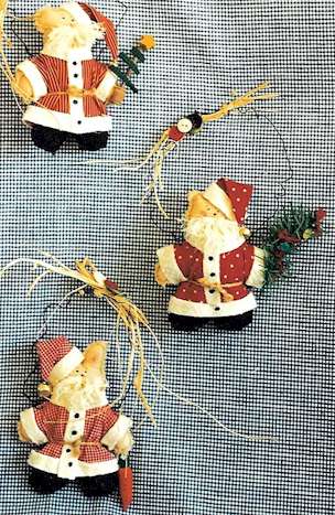 | 129 | Santa Critters Add quick and easy rabbit, bear or kitty Santa to your Christmas ornament collection. Pattern includes 6" rabbit, bear or kitty, each holding a different Christmas tree. |
