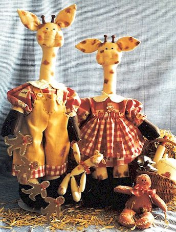 Gingeraffe Gingerbread is our life – cooking, smelling and best of all eating. Pattern includes 20" boy and girl giraffe, 6" baby giraffe and 6" gingerbread boy. |
