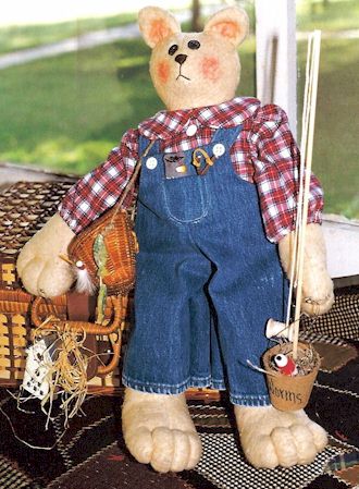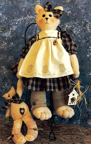 Fishing Raggedy Andy and Raggedy Cat are off to the creek on a beautiful fall day. Looks like Raggedy Cat has already caught his limit. Pattern includes 24" boy and 10" cat. |
