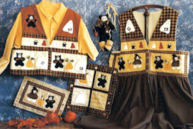 Hugs Welcome Just knowing your Teddy Bear is home waiting at the day’s end – makes each day happier. Pattern includes vest, jumper (S-XL), 15" wall hanging, 8" x 11" mini quilt and 11" bear. |