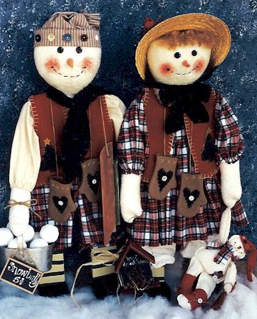 & Frostene As the temperature drops below freezing the days become shorter, snowflakes form, snowballs fly, and snowmen (and ladies) come to life for a brief instant. Pattern includes 24" boy and girl and 4" baby |