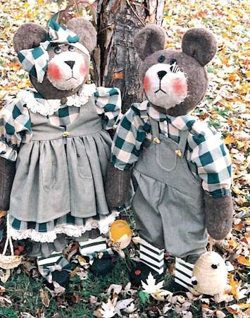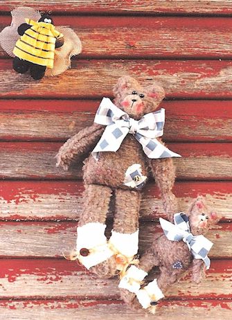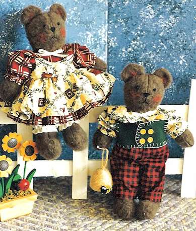 & Pearlene Two darling bears out for a day in the sunshine picking berries and gathering honey for dinner. Where did those pesky bees come from? Pattern includes 33" boy and girl and 10" baby. Made from an easy to cut wood base (full size pattern included) and plush felt |