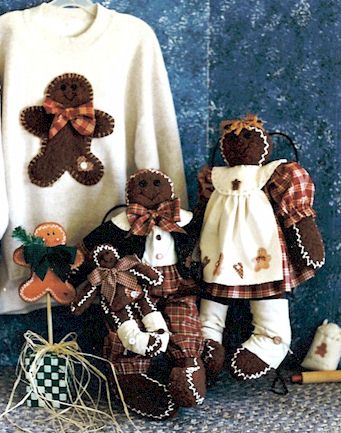 Twins Oh what a heavenly smell of the gingerbread men baking in the oven, we can hardly wait. Pattern includes 24" boy and girl gingerbread doll, 11" gingerbread boy hanging by wire, 10" gingerbread applique and 18" wood gingerbread boy on a wood checkerboard base |