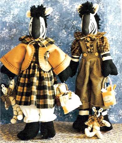 & Charlie Zee Braz Life is a zoo at the Zee Braz house, between quilting, shopping, yard work and the daily gallop into town to deliver the mail. Did I mention the twins?? Oh, let me tell you -- Pattern includes 24" boy and girl zebra with easy to paint body and 6" baby |