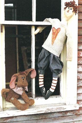Angela and Andrew Andrew shows Angela’s raggedy bunny his blue ribbon that his pet pig just won at the county fair. Pattern includes 33" boy and girl with easy to cut wood base (full size pattern) and fabric arms and head. Pattern also includes 10" pig and 17" rabbit. |