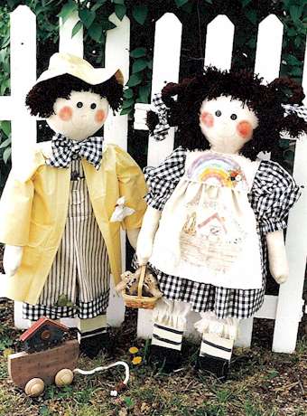 | 124 | Raggedy Twins Ticking and hearts make this pair of rag dolls irresistible. Pattern includes 22" boy and girl. |