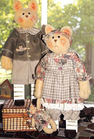 & Kitty These critters are fishing, playing, eating and just plain quick and easy to make. Pattern includes 6" bunny, cat and bear. |