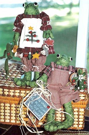 | 227 | Mistletoad Did you know that if you kiss under the Mistletoad it will keep warts away toadally? Pattern includes 15" boy and girl frog and 6" tadpole. |