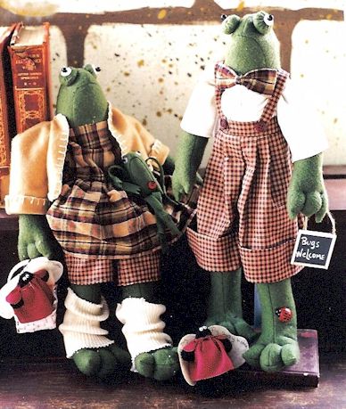 & Lilly Pad Lily is the owner of the all you can eat LadyBug café and Leonard manages the Lily Pad Estates. Pattern includes 20" boy and girl frog with 4" ladybug pins. |